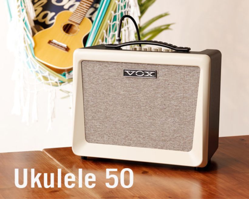 Vox Ukulele 50 je jedinečné lampové kombo, které je přizpůsobeno potřebám hráčů na ukulele. Obsahuje mikrofonní vstup (s fantomovým napájením), speciální ekvalizér, efekty a aux vstup.