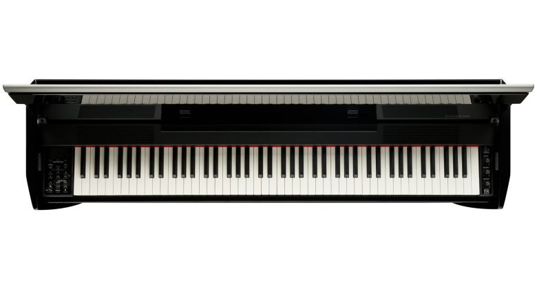 Digitálne piano s hybridnou drevenou klaviatúrou. Neobmedzená polyfónia, mikrofónny vstup, lesklé čierne.